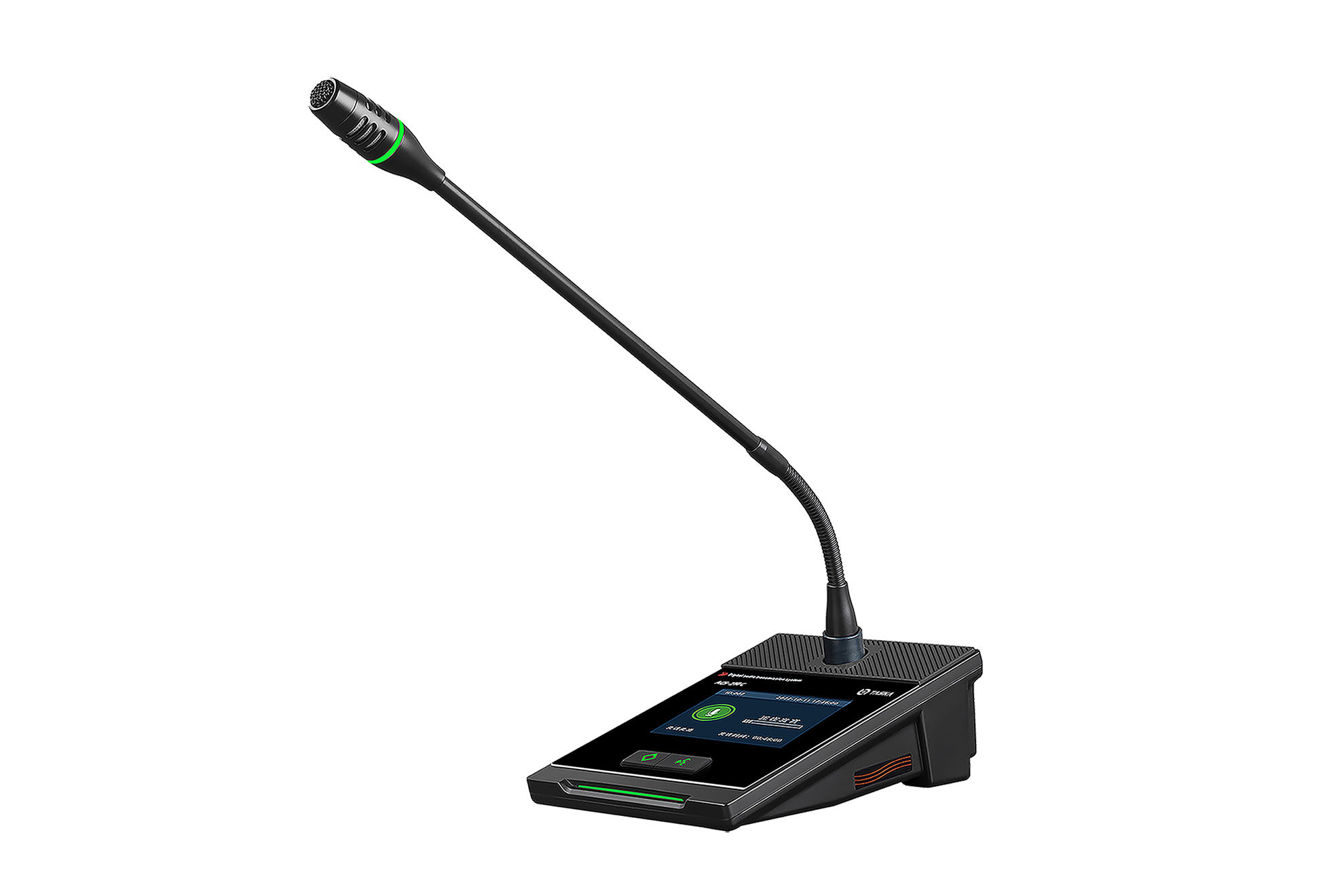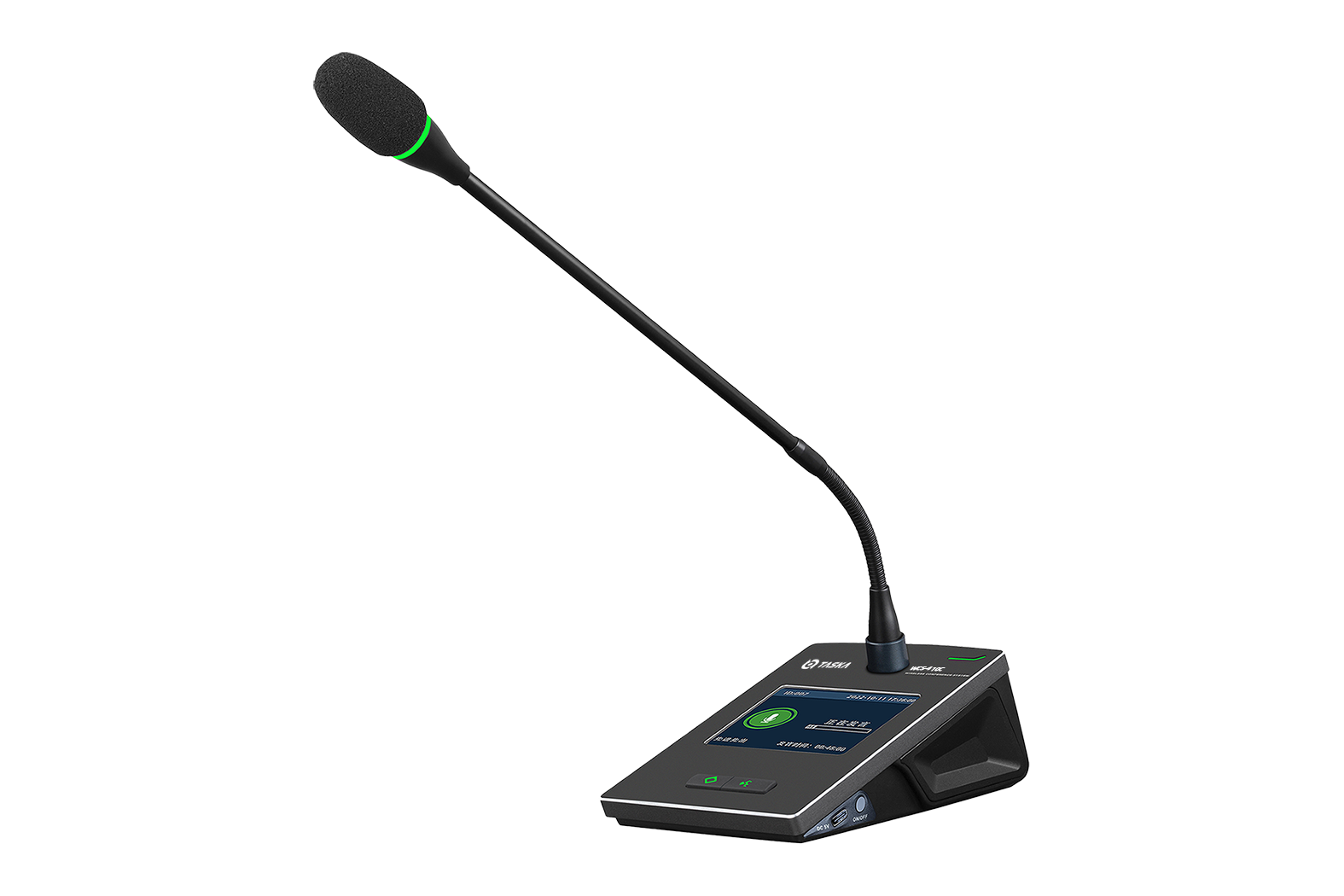 The microphone stem also features an LED indicator light, allowing users to easily see the on/off status of the delegate unit.The clear 2.8-inch full-view IPS display can show the system ID number, frequency channel, unit volume, Chinese/English menu switching, speaking time, making it suitable for a variety of meeting scenarios.