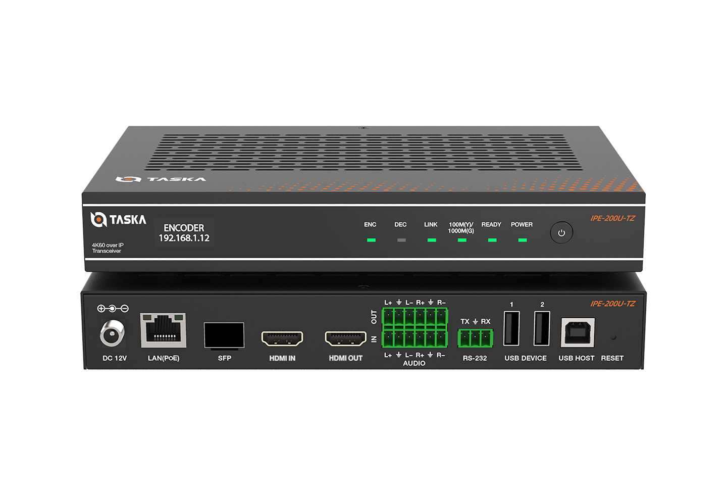 Taska IPE-200Uv2-TZ is a new generation of professional 4K60 H.264/H.265 all-in-one codec transceiver, offering optional Dante audio capability. Utilizing NeuroMesh Codec technology, it delivers uncompromised video quality with pixel-perfect color accuracy, making it ideal for color-critical applications. Designed for reliability in mission-critical environments, it features dual-network redundancy with auto-switching between Gigabit Ethernet and SFP ports (prioritizing Ethernet) to ensure uninterrupted ultra-lowlatency AV transmission over standard 1G networks at distances up to 100 meters.