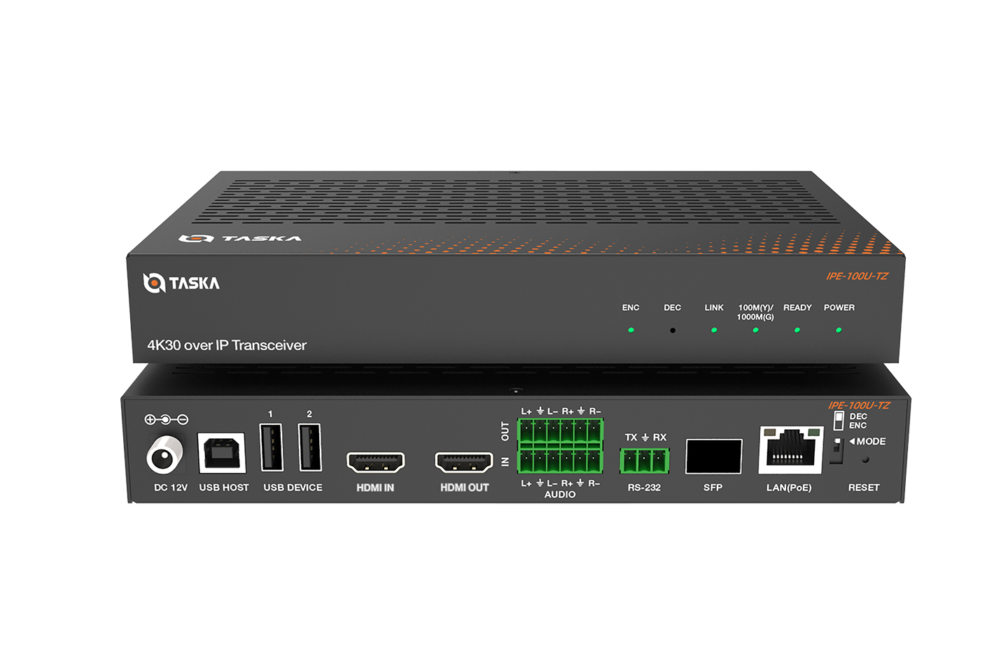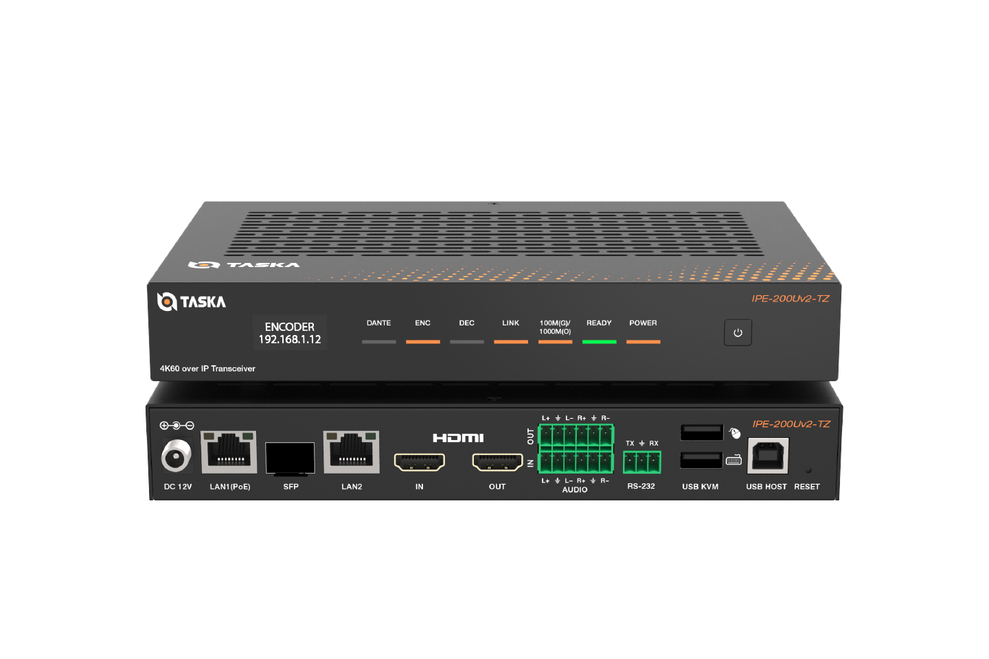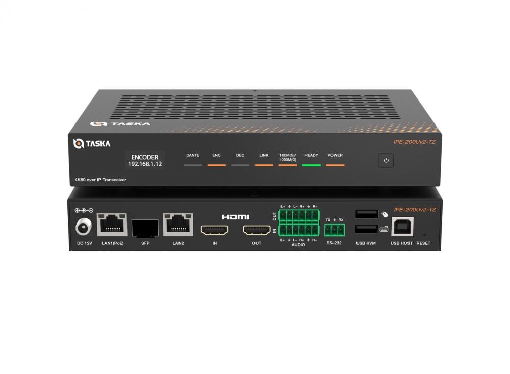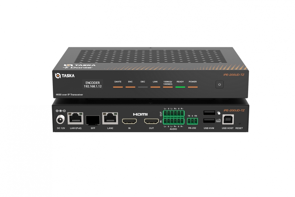 Taska IPE-200U is a professional-grade 4K60 H.264/H.265 all-in-one codec transceiver. It can deliver uncompromised video quality with true 4:4:4 chroma sampling, making it ideal for applications demanding pixel-perfect color accuracy. Designed for reliability in mission-critical environments, it features dual-network redundancy with auto-switching between Gigabit Ethernet and SFP ports (prioritizing Ethernet) to ensure uninterrupted ultra-low-latency AV transmission over standard 1G networks at distances up to 100 meters.
