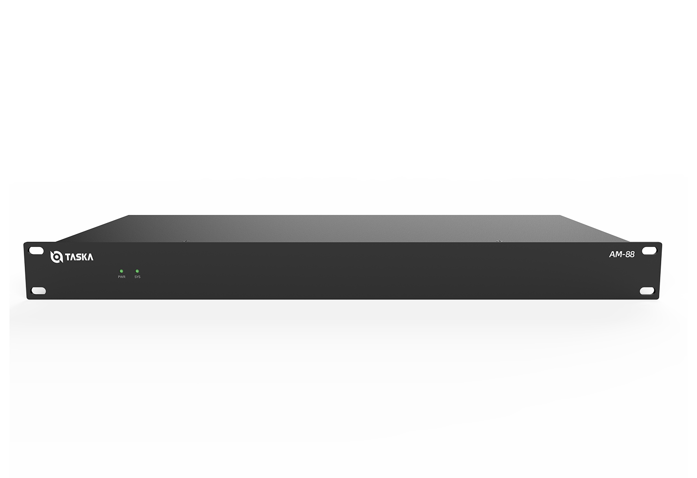 The Taska AM-88D is a professional audio processing system based on the ADI SHARC platform with a semi-open architecture, designed for high-end audio applications. It delivers 24-bit/48kHz audio quality and incorporates core technologies including independent Adaptive Feedback Suppression (AFS), full-duplex Adaptive Echo Cancellation (AEC), Active Noise Control (ANC), Gain-sharing Automatic Mixer Control (AMC), and Automatic Gain Control (AGC).