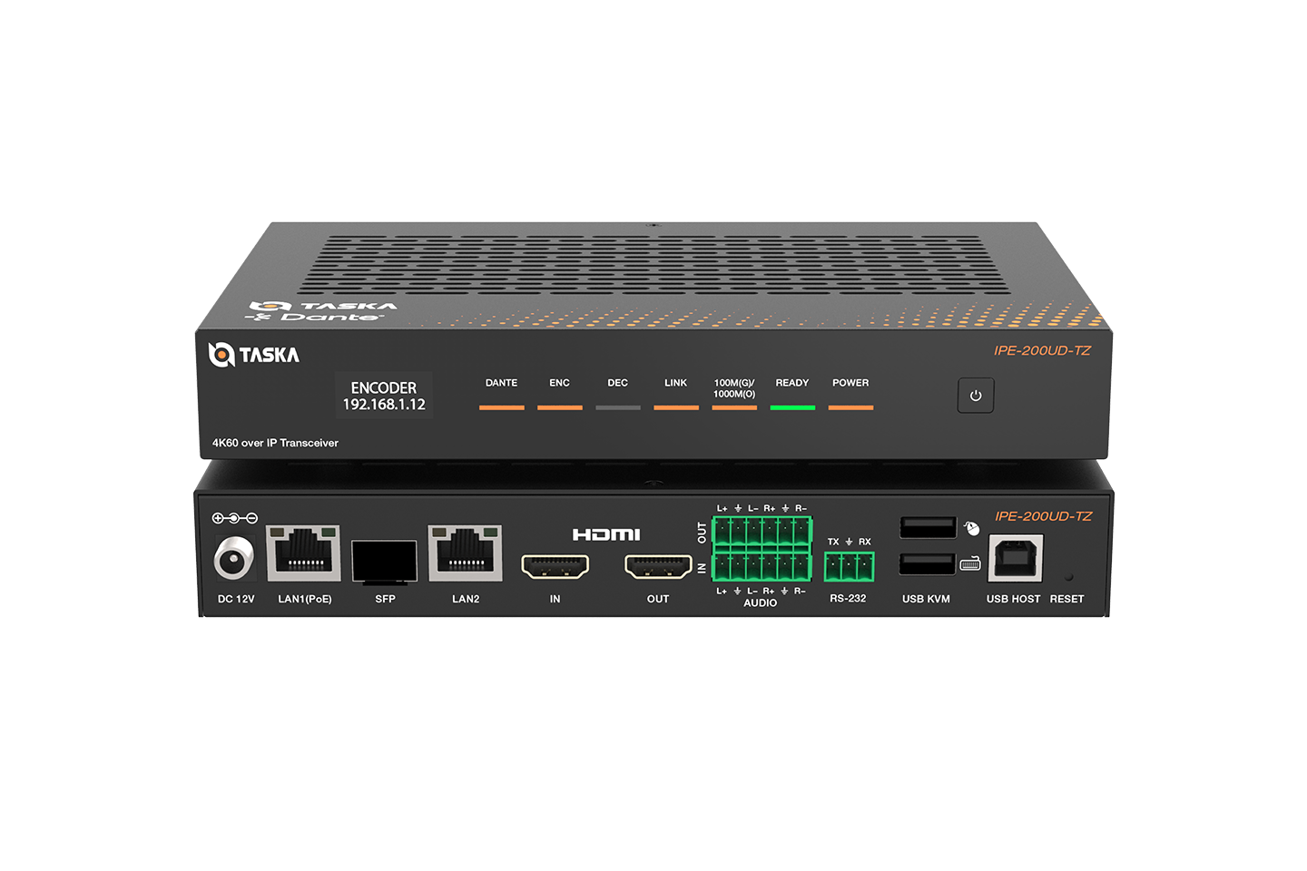Taska IPE-200U is a professional-grade 4K60 H.264/H.265 all-in-one codec transceiver. It can deliver uncompromised video quality with true 4:4:4 chroma sampling, making it ideal for applications demanding pixel-perfect color accuracy. Designed for reliability in mission-critical environments, it features dual-network redundancy with auto-switching between Gigabit Ethernet and SFP ports (prioritizing Ethernet) to ensure uninterrupted ultra-low-latency AV transmission over standard 1G networks at distances up to 100 meters.